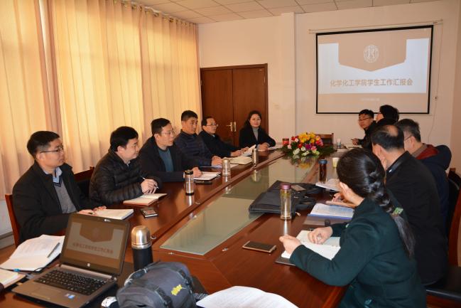 学院党委副书记胡大鹏代表学院汇报了以党建思政工作为引领,以共青团工作为主导,以学工服务管理工作为保障,以学群组织“三自原则”、桥梁纽带及监督作用为出发点和落脚点的学院学生工作体系,重点汇报了党建思政工作规范创新、学风建设真抓实干、学生“三自”作用充分发挥等方面内容,并就2019年重点推进的“读书节”“化学节”“学代会”等三项工作进行了简要汇报;学院三位副院长围绕如何更好地做好学生工作,分别从教学、科研、研究生教育等方面提出了一些问题和建议;学院全体辅导员结合自己的工作实际,从不同方面谈了学生工作中遇到的困惑,并提出了意见和建议。