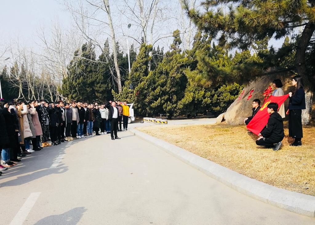 于3月1日组织全体学生党员头顶警世钟,面朝孺子牛,举行隆重的入党宣誓仪式。学院党委副书记胡大鹏出席仪式,四个学生党支部的全体党员参加宣誓活动,选派至本科生支部担任“第一书记”的三个教工党员也参加了今天的宣誓仪式,仪式由团委书记彭婕主持。