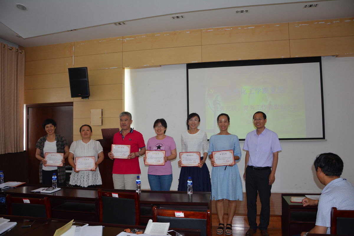 委员会关于表彰优秀党员、党务工作者的决定》,由刚刚荣获省高校优秀共产党员的李庆忠教授为冯咏梅、姜雪梅、孙砚博、王玮、王湘敏、张培青、郑玉华等7位学院优秀党员颁发证书,任万忠、姜丽岳为崔孟忠、彭婕、邱文伟等3位学院优秀党务工作者颁发证书。优秀党员代表郑玉华博士作《不忘初心,做平凡党员,传承对党热忱》主题发言。她说,自己是一名平凡党员,担任着教师、母亲、子女等多重角色,她号召师生不忘初心,牢记党员身份,做合格党员,为党旗增辉。
