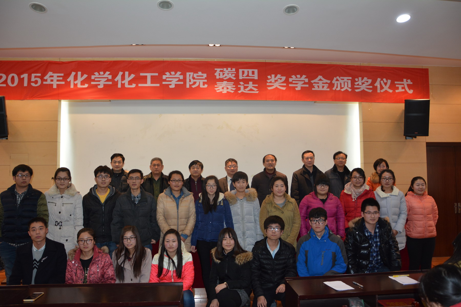 年度“碳四”奖学金的决定》。与会领导和嘉宾分别向获得“泰达”奖学金、“碳四”奖学金的同学颁发了获奖证书。