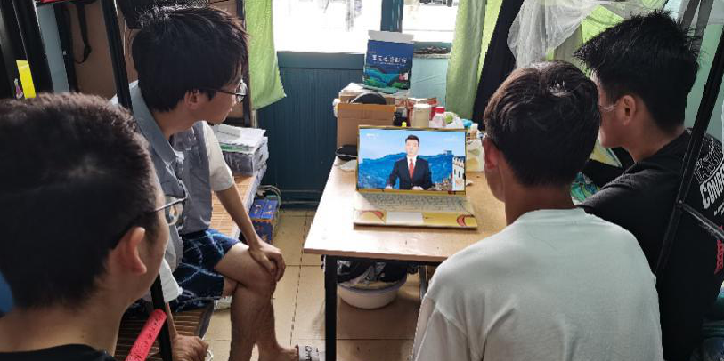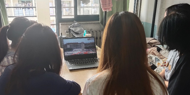 学生们还纷纷以党支部、小组和宿舍等为单位,同时观看庆祝大会。