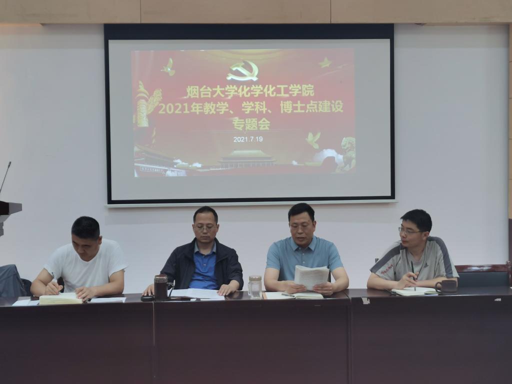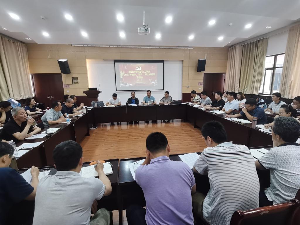 全体教职员工全力奋斗的方向。其后,院长李庆忠传达了校长段培永就全面做好暑期各项工作的部署,同时对学院暑期前后的各项工作进行总结和部署。紧接着,崔洪涛教授和刘杰教授主讲,带领大家对化工专业申报博士点的各项条件和准备工作等展开研讨。老师们从学科建设、领军人才、重要成果和奖项、师资构成、教学育人、软硬件现状及经费等各个方面,一条一条地分析、一项一项地讨论,对各项工作以及各方面的差距与困难进行细致分解并落实到人,大家群策群力,会场气氛热烈。最后,在学院学术委员会主任徐秀峰教授的带领下,大家分析了化学申报博士点的情况。