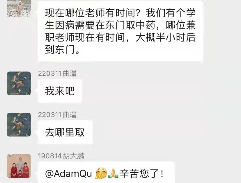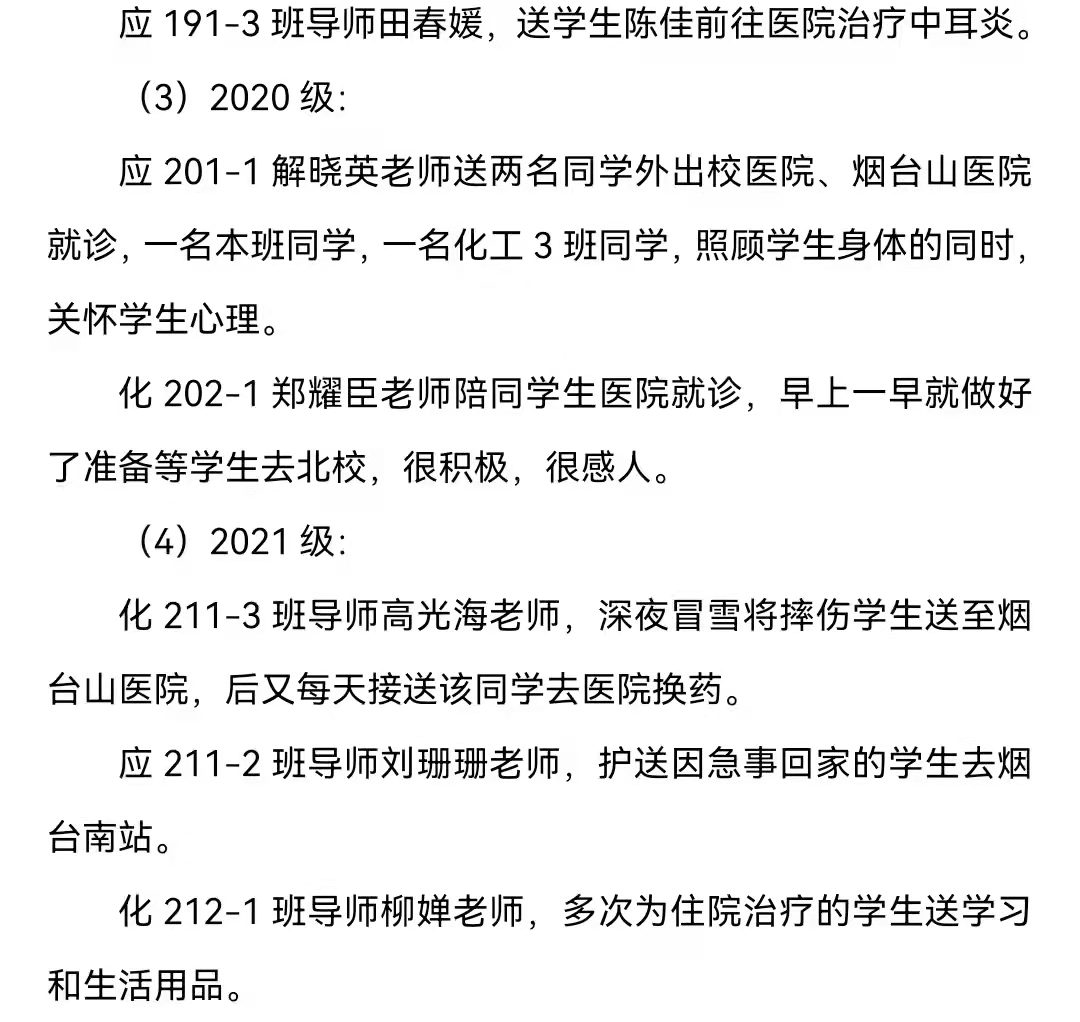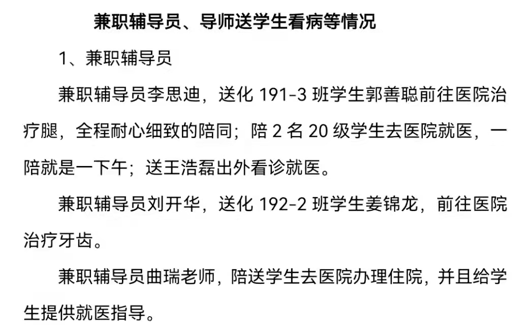 “老师陪我去就诊,照顾生病的我,真的让我感到了家的温暖。”