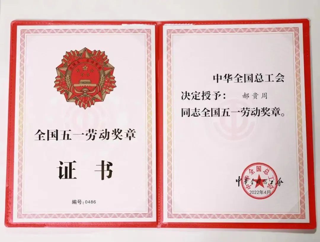 荣膺“全国五一劳动奖章”