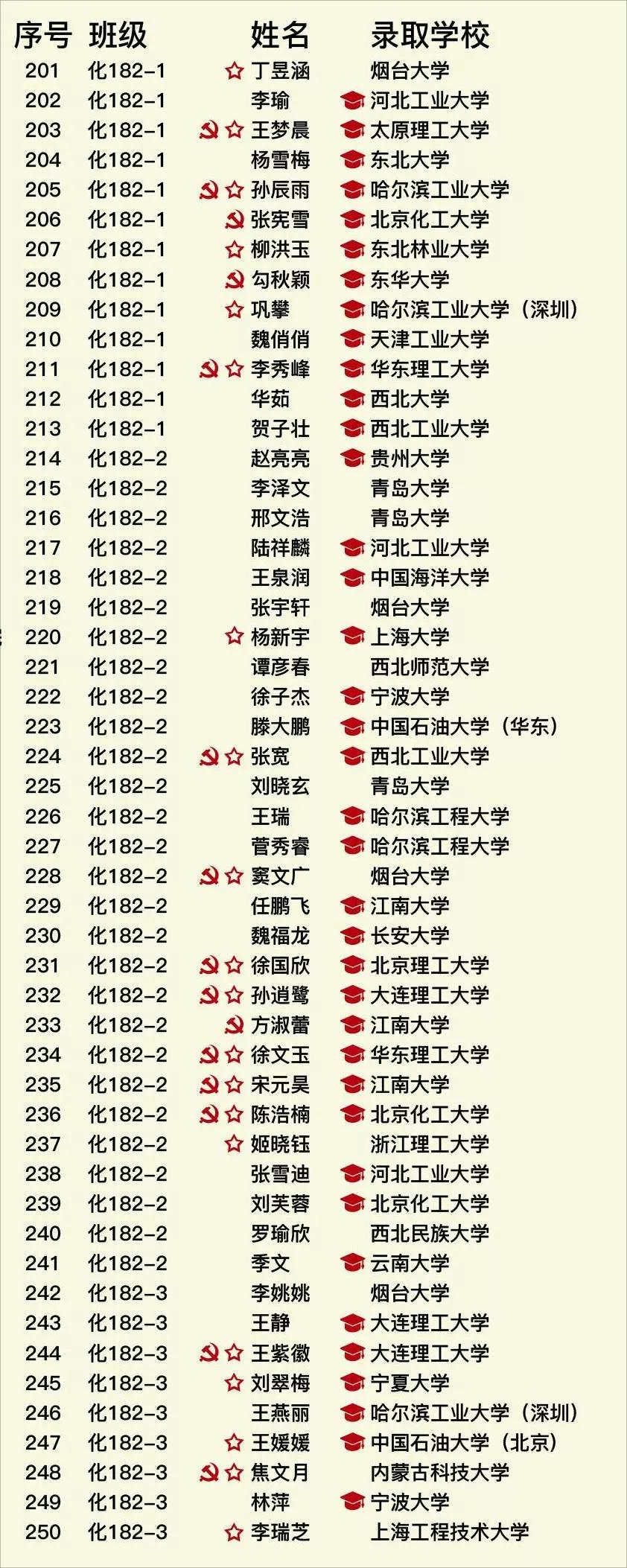 以2022年为例,截止到目前,2022届毕业生共有55名同学签约国有企业单位,其中25人签约万华化学集团,6人因考取研究生放弃签约;其他性质企业签约68人,涉及山东省内、省外32家优质企业;共有6人签约公务员和事业单位,其中2人为拔尖选调生,2人考取基层公务员,2人进入北京理工大学鲁南研究院工作;4人参加到西部计划服务基层项目,参军1人。