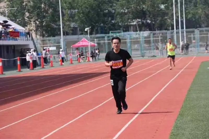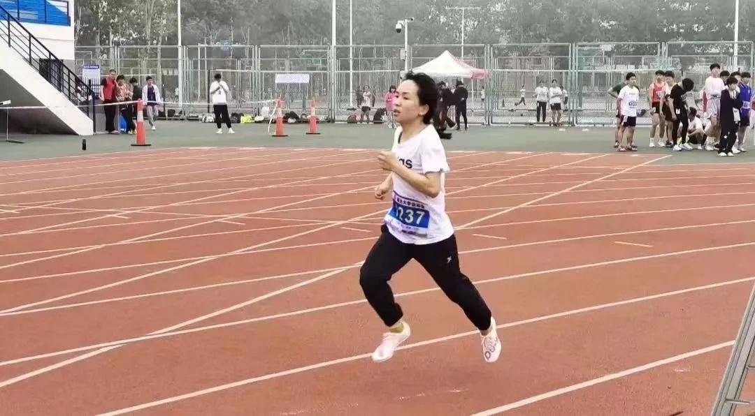 曲瑞老师正在进行400米比赛