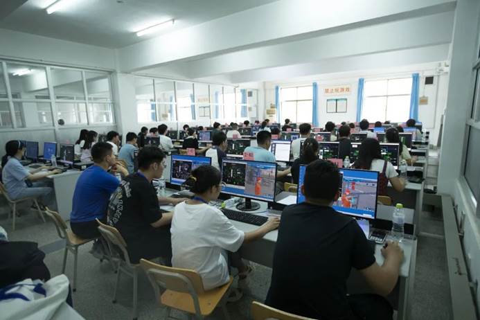 院长李文佐一道,陪同大赛专家组组长艾宁教授、大赛秘书长范江洋研究员,到大赛的每个实验室、考场巡考,并慰问在一线工作的老师和志愿者们。