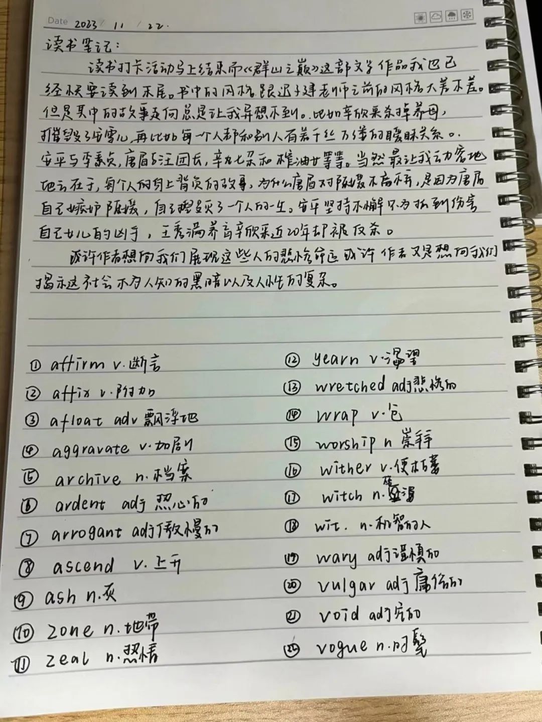 总的来说,参与英语单词打卡活动是一次非常有意义的体验。它不仅提高了我的词汇量,还让我对英语学习有了更深的理解和感悟。