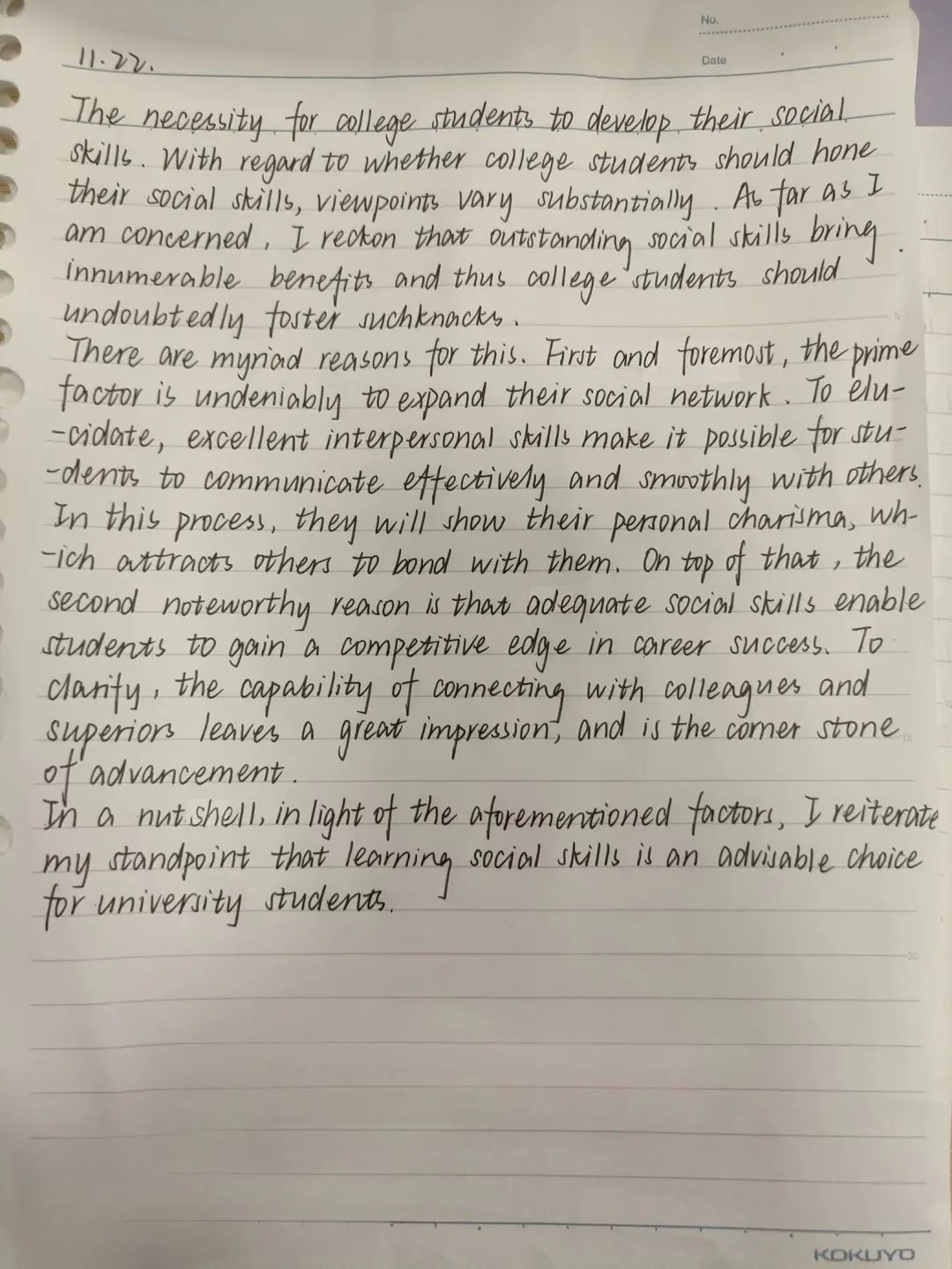 在读书打卡的过程中我并没有太多的感受,只是坚持;但是,当接近尾声时,蓦然回首,才突然发现我早已不是收获满满。截止到11月22日我完成了所有读书打卡活动的要求。在这段时间里,我读过英语、读过思政知识点、读过化学笔记。在读的过程中,我复习到了以前学过的知识:单词、思政知识点记得更牢了,化学公式也理解得更深刻了,这提高了我的期中考试成绩。这次活动让我最开心的是,我收获了一个更加自信的我。