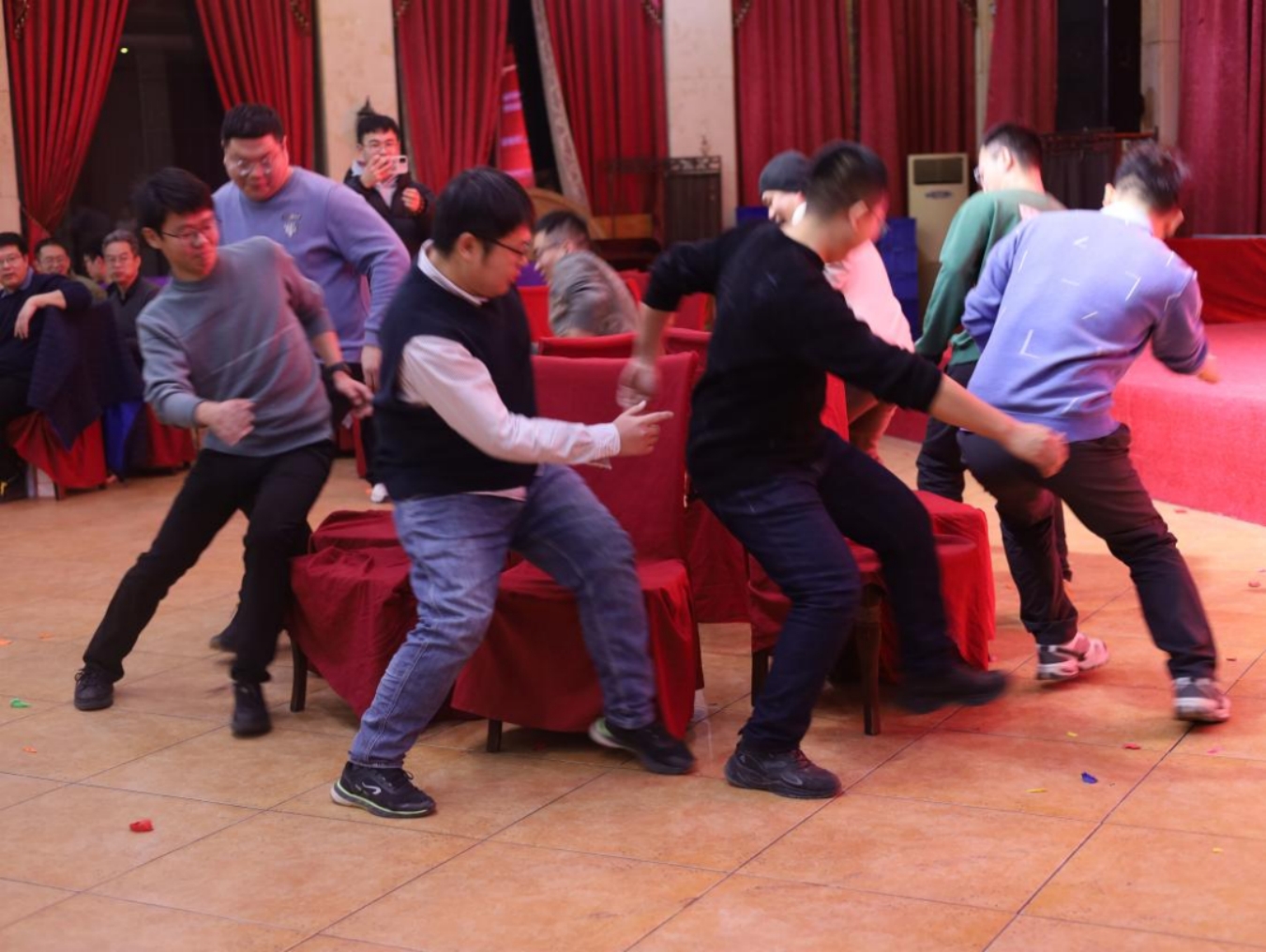 “抢凳子”游戏考验的是大家的专注程度和反应能力。随机的暂停声让在场的人都为之提心吊胆。妙趣横生的游戏时光,你争我抢的欢声笑语,为联欢会现场增添了无尽乐趣。