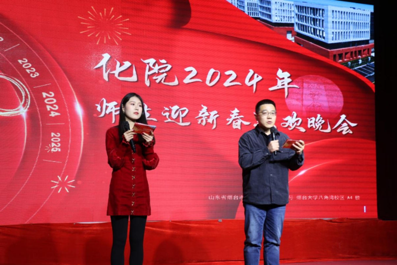 2024年师生迎新春联欢晚会也同时开始了!华灯初上,舞台璀璨,绚丽的灯光映照出每个师生欢乐的笑容。晚会由学院团委辅导员张成友、赵锦泽老师共同主持。