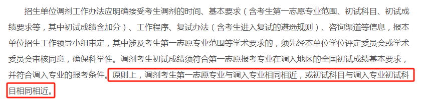 2024年调剂要求改为"原则上,调剂考生第一志愿专业与调入专业相同相近,或初试科目与调入专业初试科目相同相近。"。调整给予了高校一定的自主权,尤其是允许一些跨专业调剂,显然是积极回应交叉学科人才培养的大方向要求。