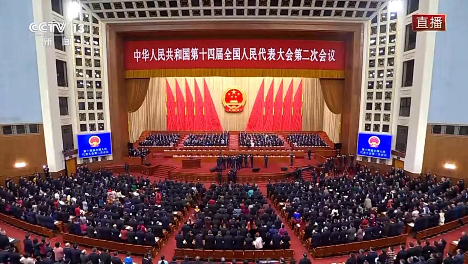 3月5日上午9时,十四届全国人大二次会议在人民大会堂开幕,中共中央总书记、国家主席、中央军委主席习近平等党和国家领导人步入会场,出席开幕会。
