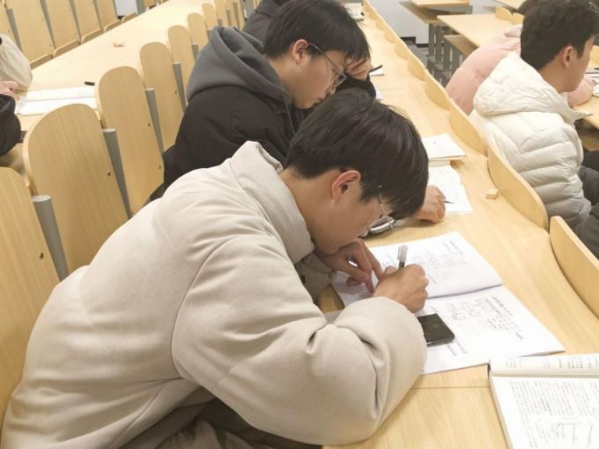 图为学生讲师应221-2班邵锦浩在为同学们补习线性代数。