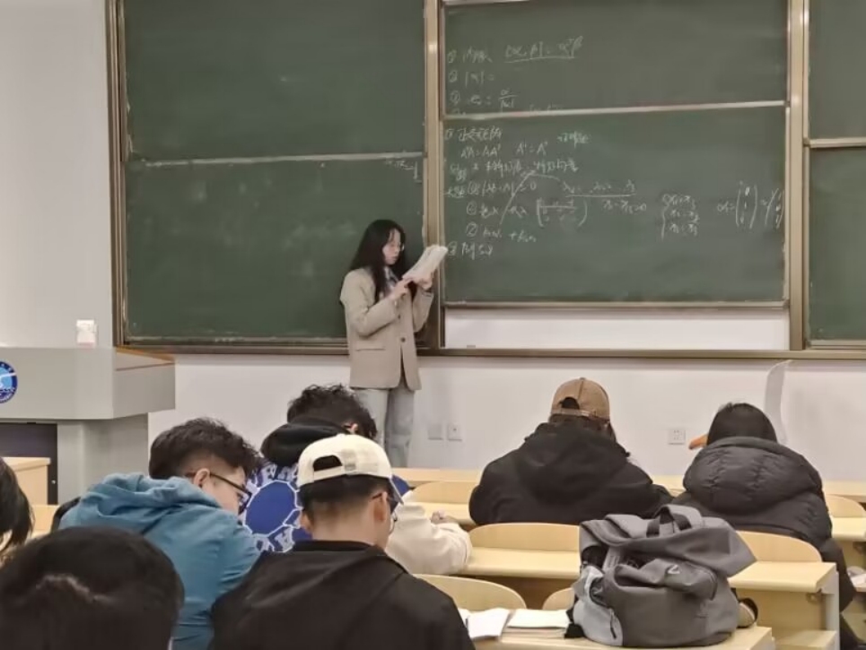 图为学生讲师化222-3班满梦叶讲授线性代数课。