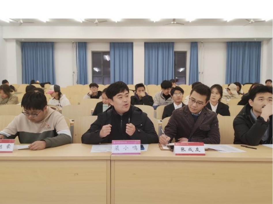答辩结束后,学院团委张成友、赵颖、赵锦泽老师在各自分管的专业团总支述职暨答辩会场,对各团支部的2023年工作及述职、答辩情况进行了总结发言。他们首先充分肯定了三个专业团总支及其下辖的各团支部2023年度的工作,并针对各团支部的特色进行了总结分享,对团支部存在的共性问题进行分析指正,尤其是在更好地提高团支部组织建设效能、提升团日活动质量、繁荣第二课堂等方面提出了建议。他们希望各专业团总支、各团支部在接下来的工作中,能够不断增强引领力、组织力、服务力,努力教育青年学子要有大局观,要在学院“六有”共青团的建设思路的指引下,带领广大团员青年成长为有理想、敢担当、能吃苦、肯奋斗的新时代好青年,为自己和同学们的成长成才,为学院、学校的发展贡献青春力量!会后,各专业团总支师生分别合影留念。