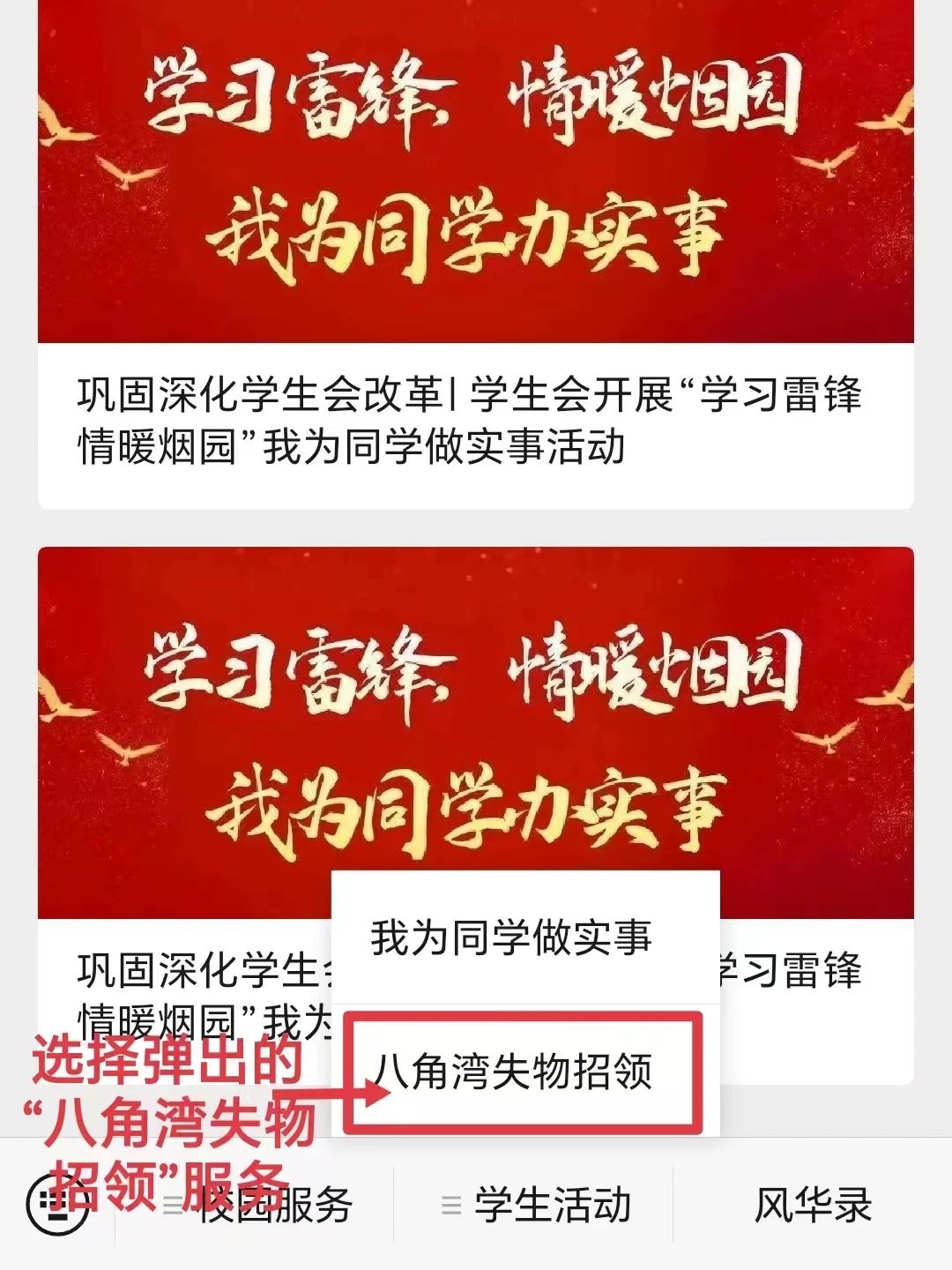 选择弹出的“八角湾失物招领”服务。