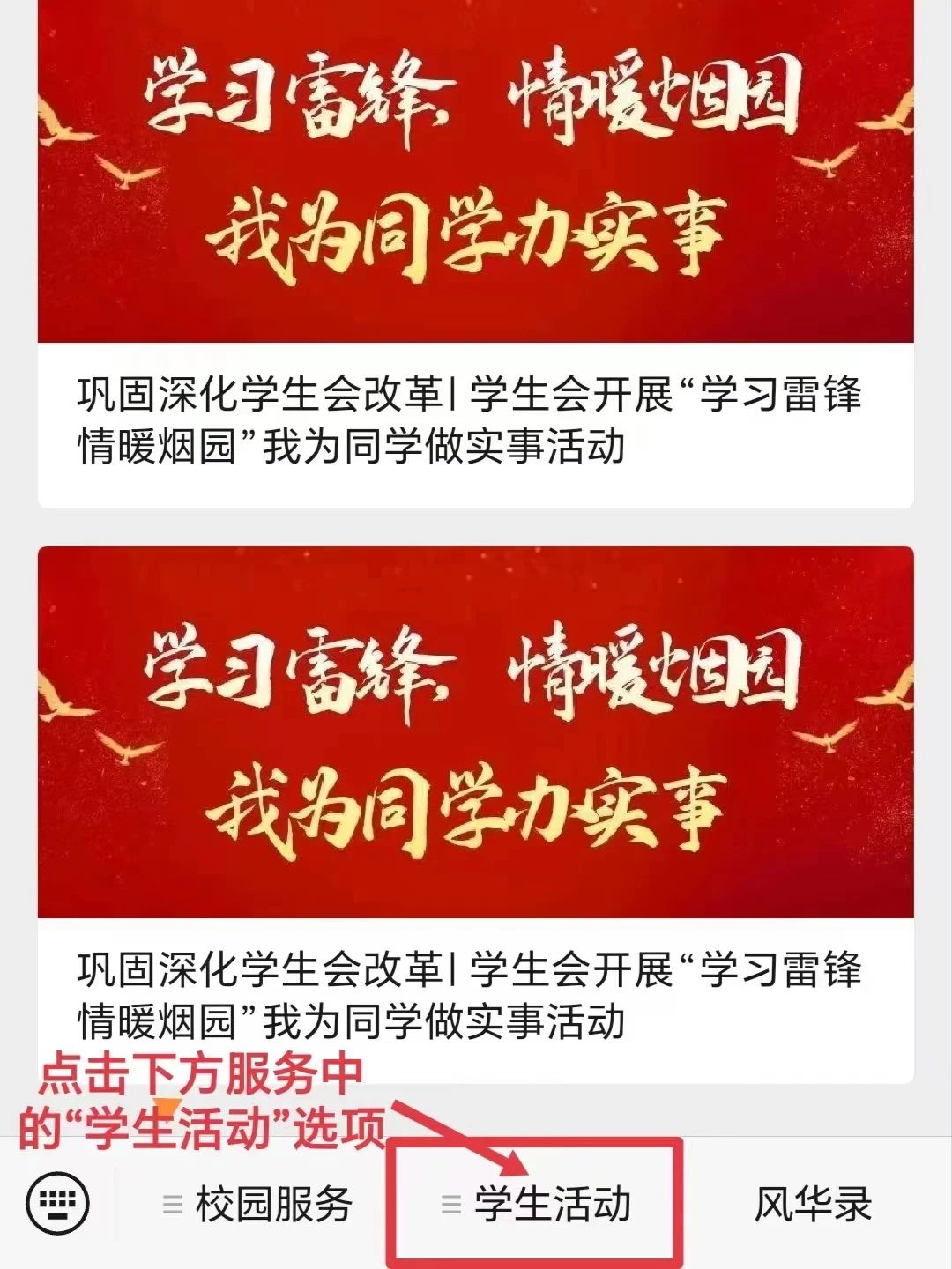 点击下方的服务中的“学生活动”选项。