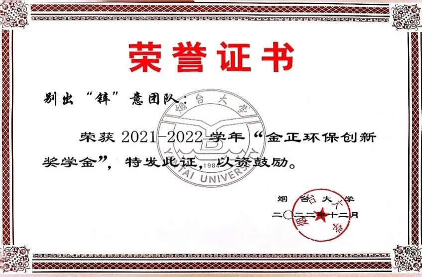 “2021-2022学年金正环保创新奖学金”等荣誉