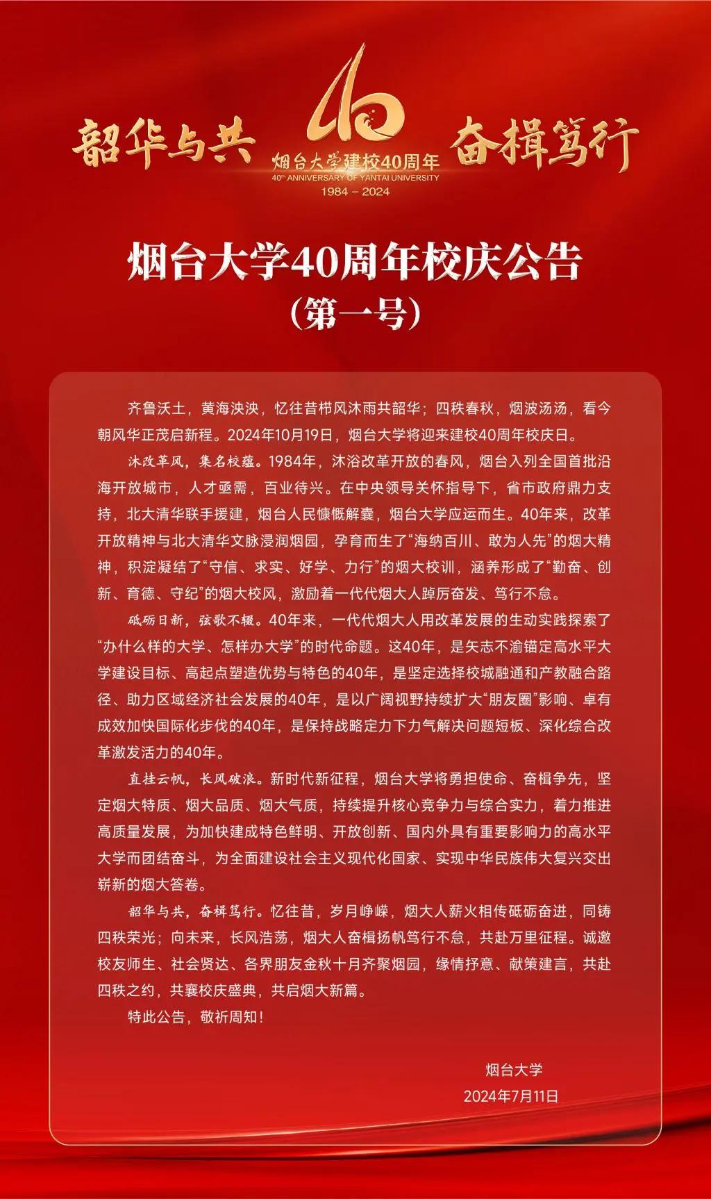 建校、建院四十年丨5楼自拍 40周年校庆公告(第一号)