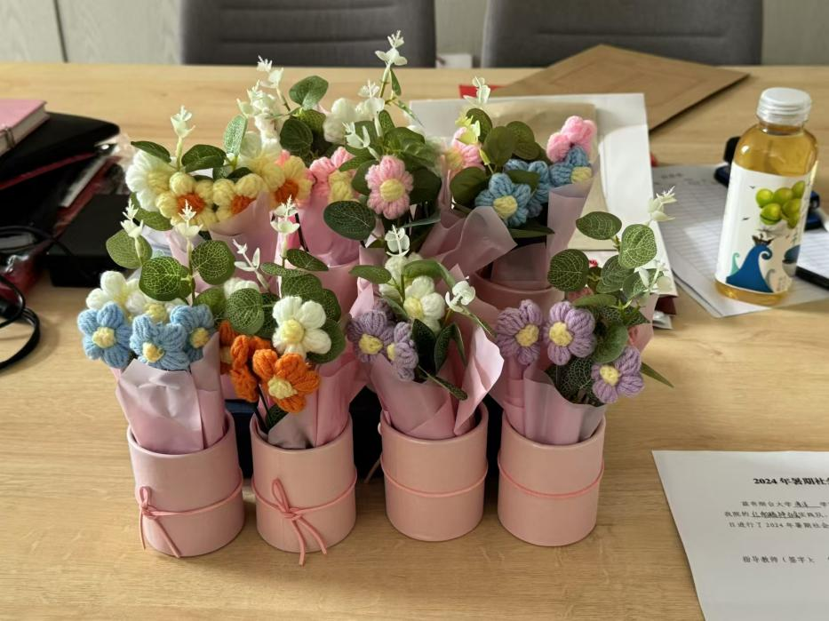 为表达对老师们的感恩与感谢,“化小水”们发挥创意,以化学元素、实验装置以及学院吉祥物“化小水”等为灵感,设计并绘制教师节主题海报。除此之外,学生干部们带领全体“化小水”们精心策划,细心筹备,用实际行动诠释了对老师的敬爱,让教师节成为了一个充满温情与感动的日子。“化小水”们为班级导师、任课老师送上了精心准备的小礼物,表达了对他们悉心教导的感谢。本科学生会、研究生会与学生团委等组织的学生干部们手工制作了寓意深刻的礼物,并将这份心意送给了辅导员老师们。老师们接过充满心意的小礼物,脸上洋溢着幸福的笑容。