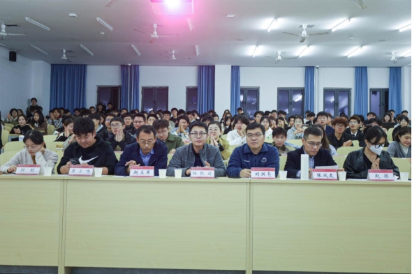 答辩结束后,既是评委又是导师代表的刘洪亮老师作点评发言。他首先表达了对班委们的由衷感谢,肯定了他们为班级付出的努力与贡献;接着,刘老师强调了导师工作的重要性,指出导师不仅是学术上的引路人,更是学生成长道路上的关键指导者;最后,他倡导院学工办、导师与班委之间的紧密联动,认为这是班级工作不断进步、能够培养优秀人才的重要保障。最后,张成友老师总结发言。他说,同学们要明确学生身份,学习不仅是学理论,更要学能力和学做人,要知行合一方能成才;他提醒同学们要守好学习底线,特别是要敬畏课堂、尊敬师长、严格遵守教学秩序;更要敢于争先,追求卓越;他特别指出学生干部需做好表率,团结同学,顾全大局,助力每位同学快乐成长、顺利毕业。最后,张成友老师强调,落实是关键,方法总比困难多;班级间应多交流、多创新,激发新思维,共同成就美好未来。
