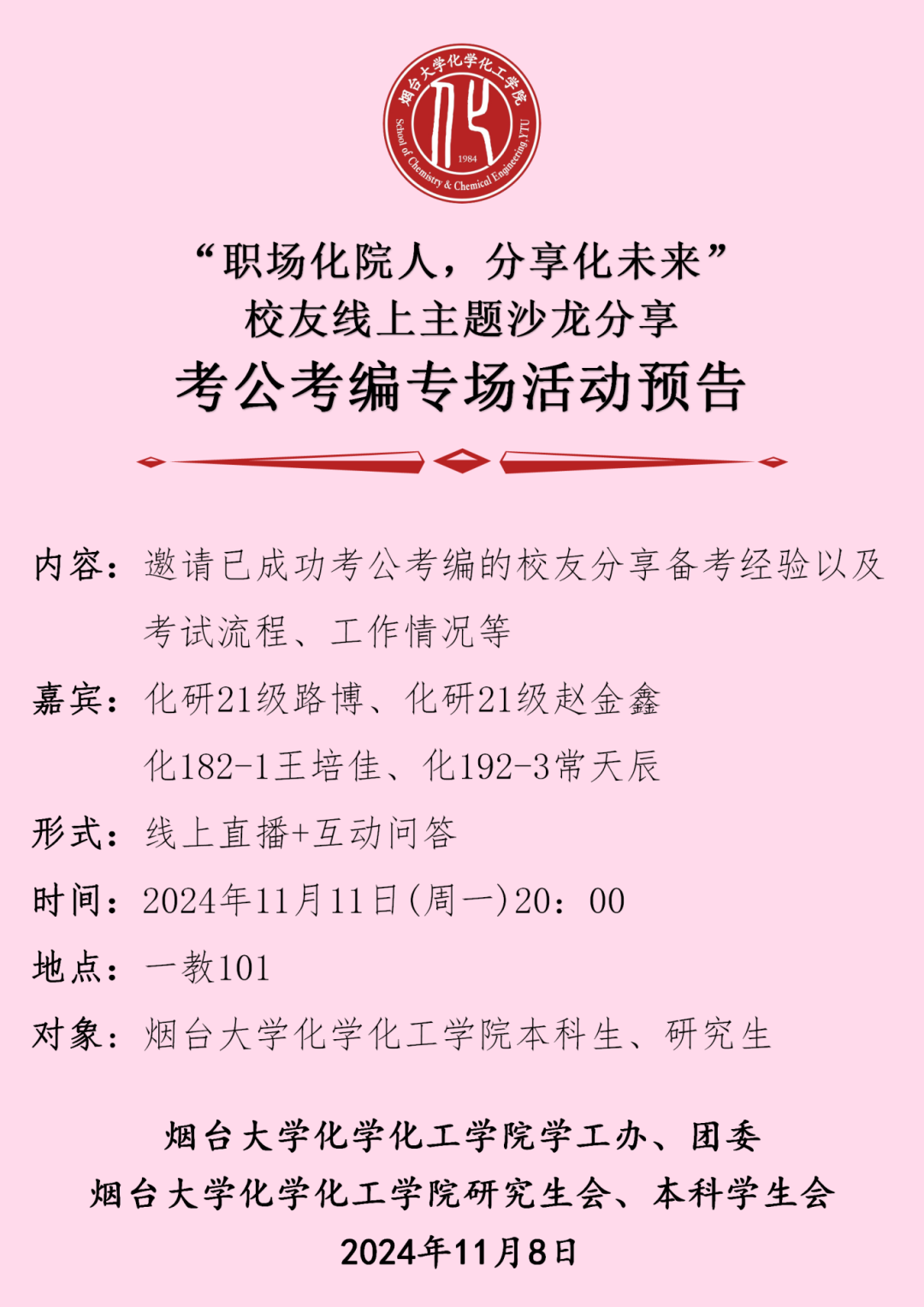 “化小水”的就业服务|“职场5楼自拍 人,分享化未来”校友线上主题沙龙分享考公考编专场活动预告