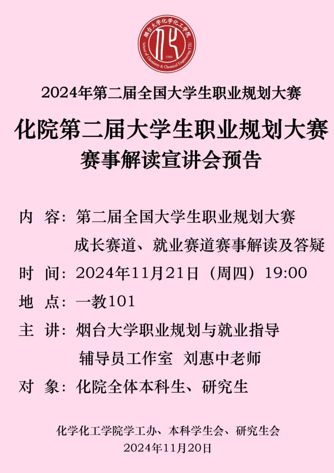 学生处就业指导中心相关通知,学院暂定于2024年11月29日(周五)举办5楼自拍