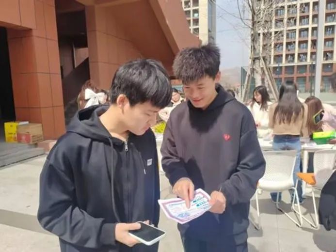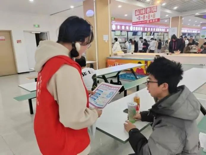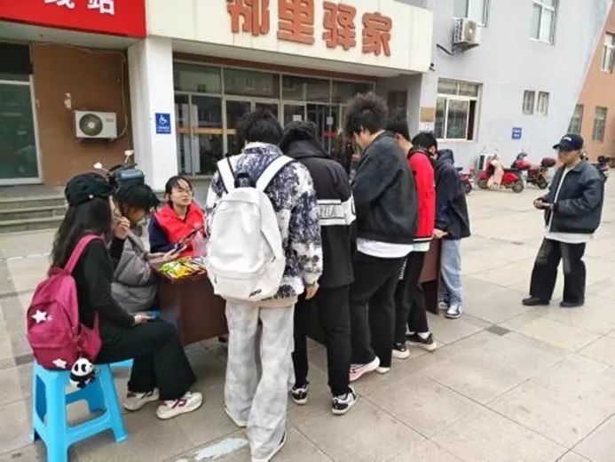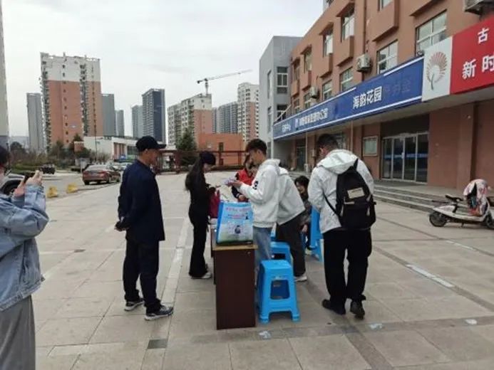 活动现场,团支部在“邻里驿家”前设宣传展位,把宿舍闲置物品改造成“绿色展台”,向居民传递环保理念,让大家直观感受资源循环利用的价值。另一组志愿者则“移动宣传”,发放自制手册、开展问卷调查,针对老中青少不同群体,用生活案例普及素质教育,与居民深度互动。