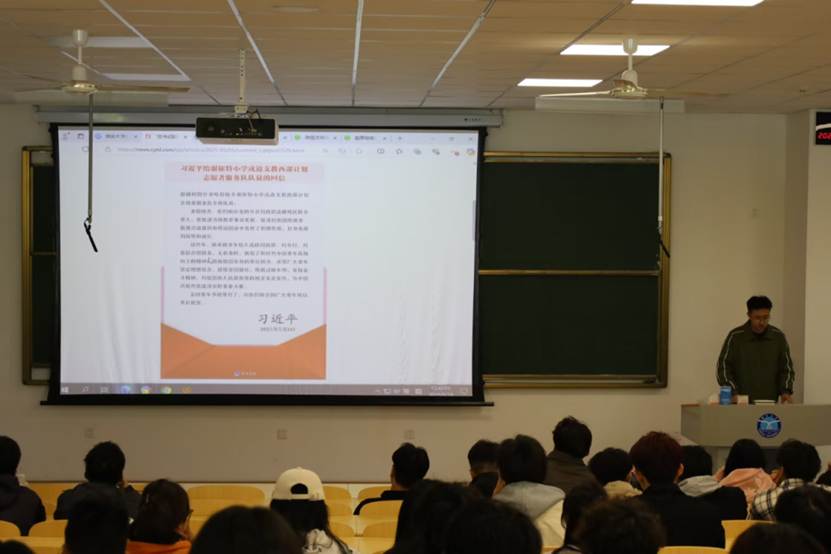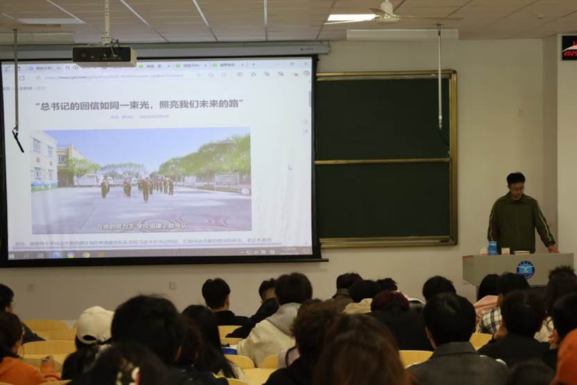 团委于2025年5月10日在八角湾校区一教102教室共同学习总书记的回信,学院团委副书记刘振兴同学领学。