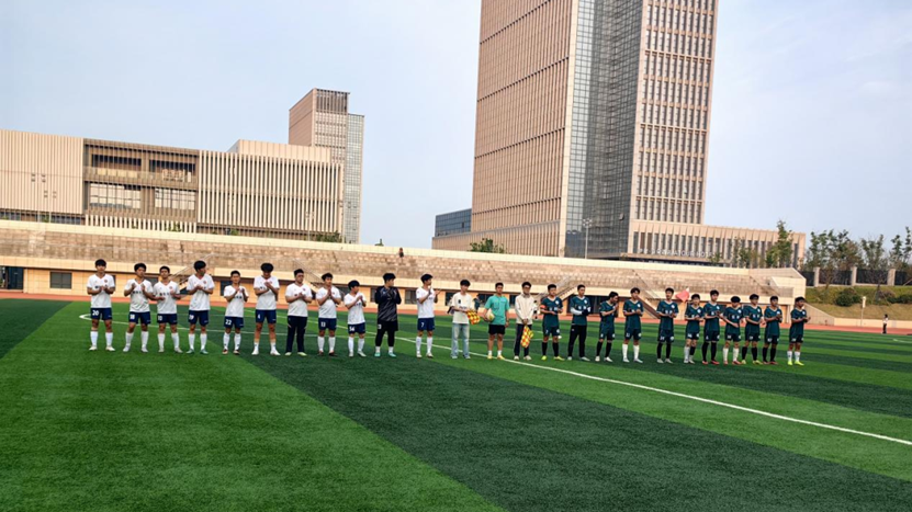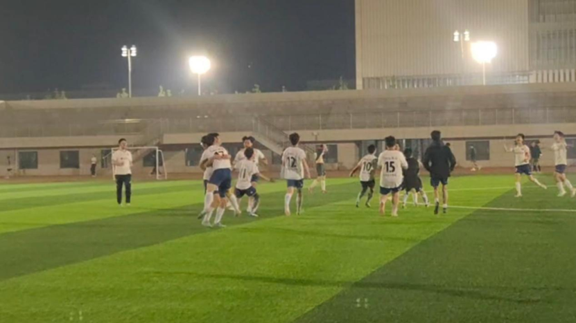 一路过关斩将,半决赛遇强敌。面对海洋学院,上半场我方先发制人,全队采用高位压迫的战术,在获得一次角球机会,10号丁圣倡发到禁区后点,22号连永健抢点将球打入球门。1:0,5楼自拍
