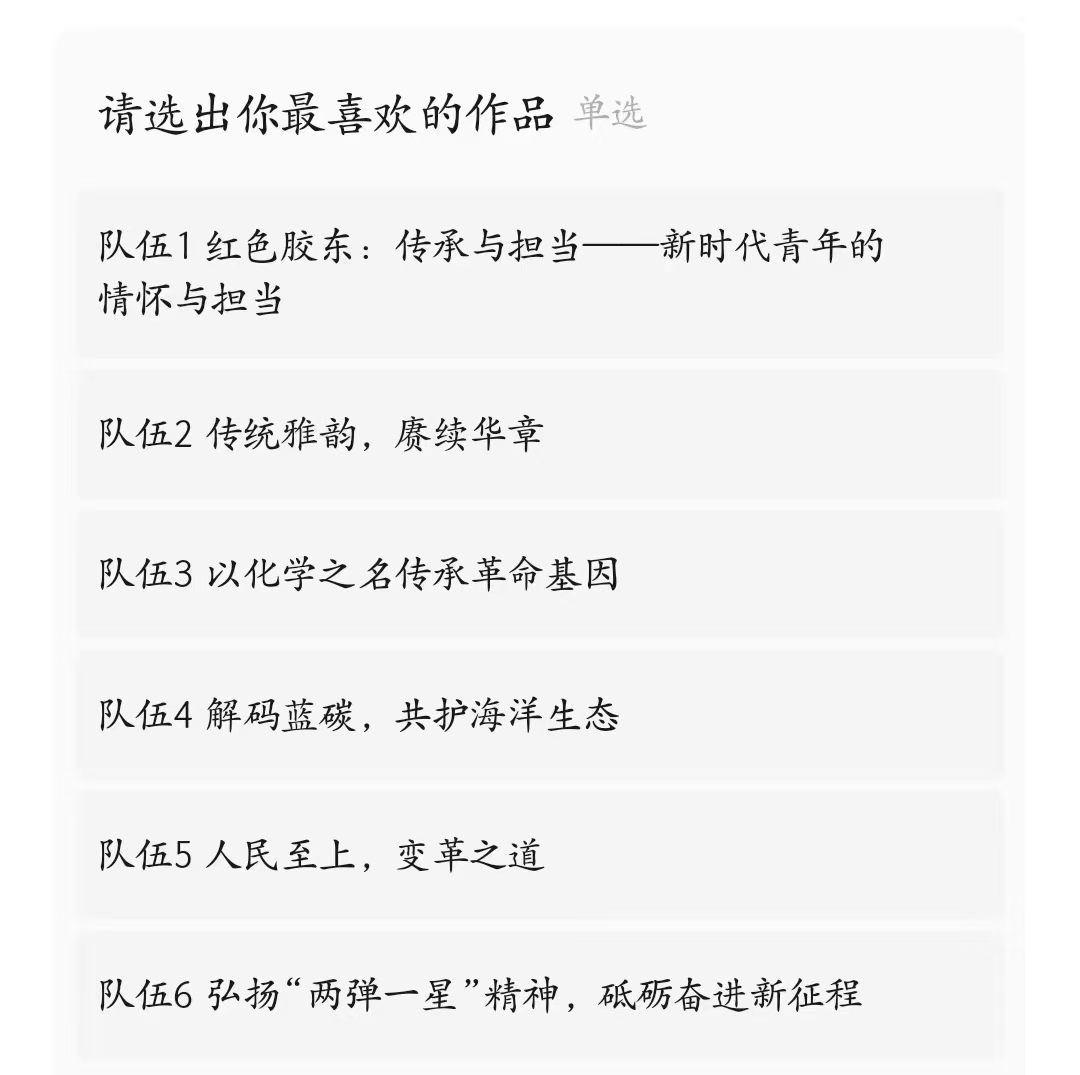 在这场充满智慧与激情的角逐中,6支队伍各展风采,如夜空中璀璨的星辰,各自散发着独特的光芒。他们用精彩的呈现,为我们带来了一场思想的盛宴、灵感的碰撞。此刻,诚邀您从这6支魅力非凡的队伍中,选出您心中那颗最耀眼的星,投出您宝贵的一票!