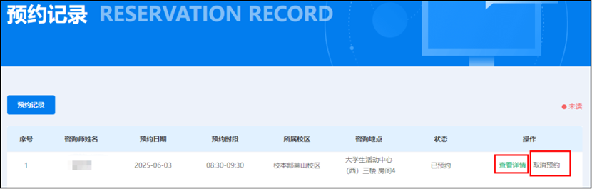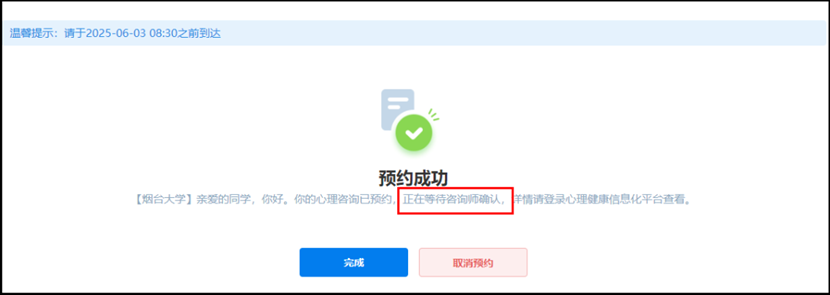 ②咨询师确认预约后,预约完成,不可再取消咨询。如需取消,可致电心理中心