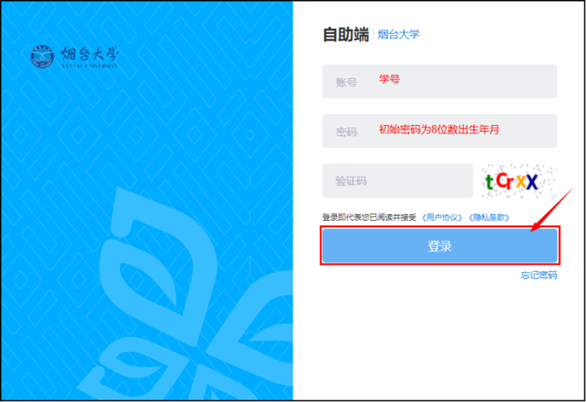 账号为学生本人学号,初始密码为身份证上八位出生日期。举例:2001年3月7日生日的密码为:20010307
