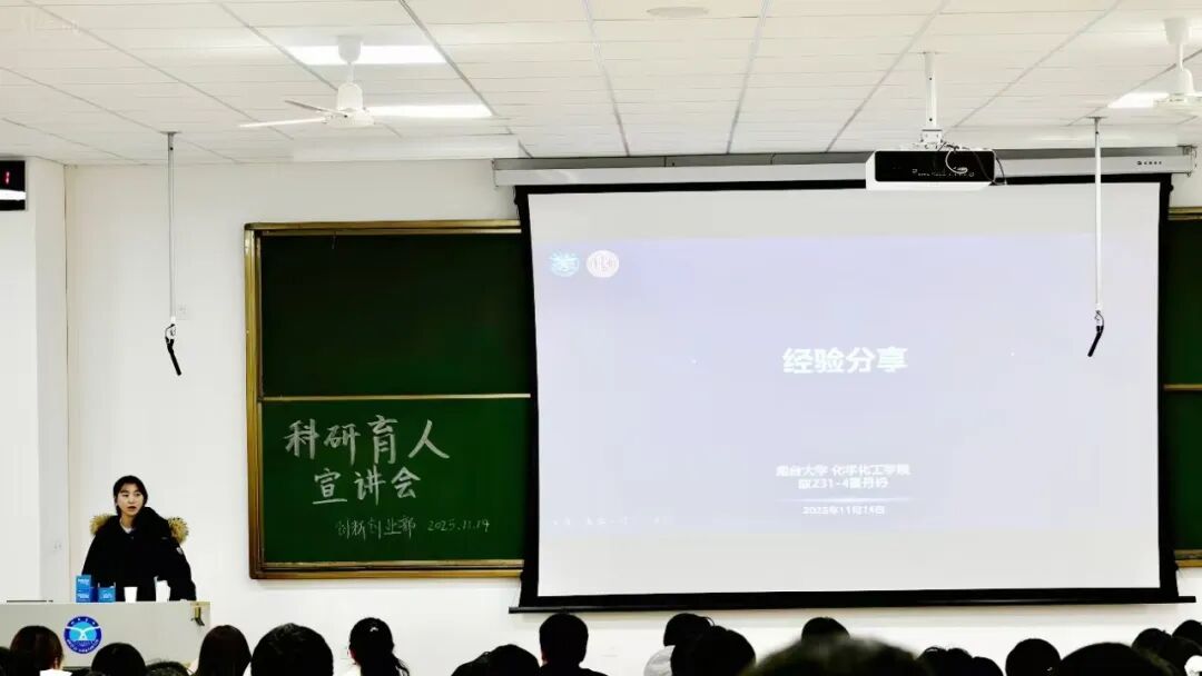 在二教101教室开展科研育人宣讲会。本次活动由团委创新创业部承办。