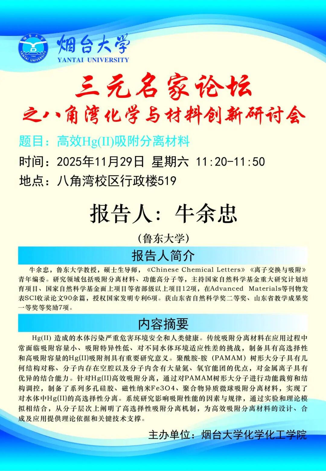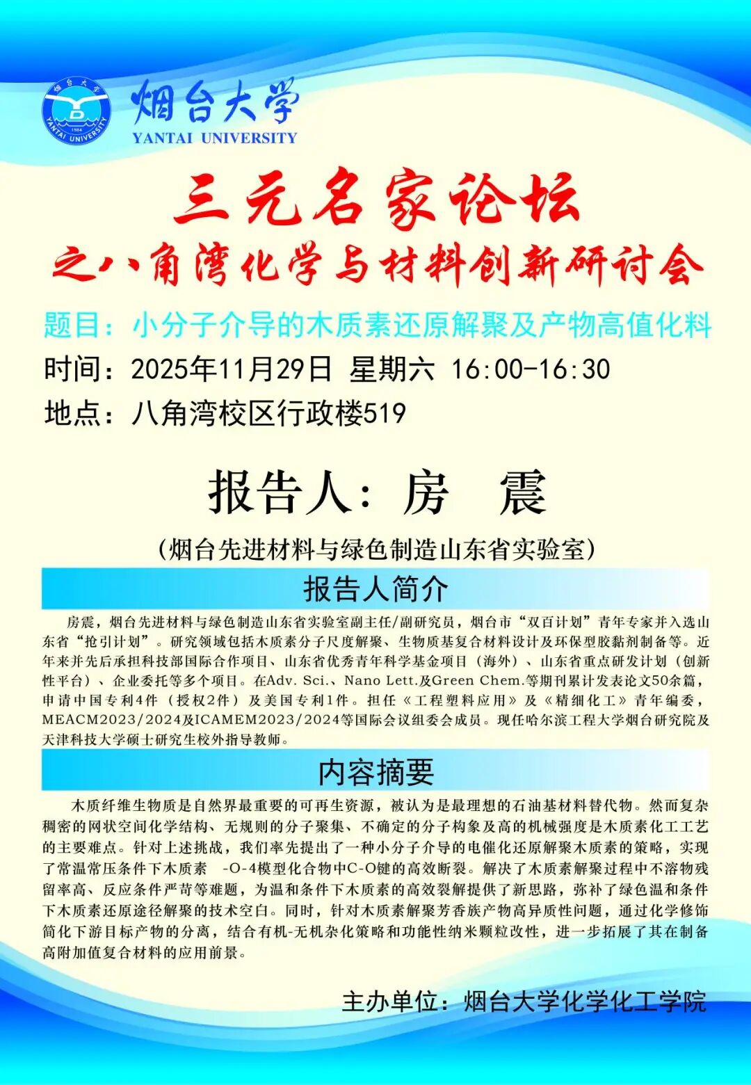 学术交流 | 三元名家论坛之八角湾化学与材料创新研讨会