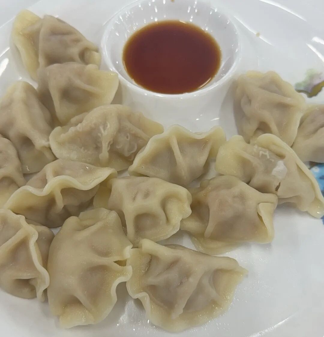 餐厅一楼现煮饺子太香了!热乎软嫩的面皮裹着鲜汁肉馅,蘸满红油芝麻料,一口鲜香辣爽,十几块炫满盘,暖乎乎的超满足!