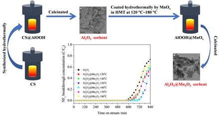 在前期工作(Journal of Environmental Chemical Engineering, 2019, 7, 103192; 2020, 8, 103890; 2020, 8, 104166)基础上,近日徐秀峰教授团队合成了薄片形貌 Al2O3@Mn2O3复合固氟剂,用于分解NF3,显著加快了 NF3气体的扩散与反应,提高了固氟剂活性和利用率。研究结果以“Destructive sorption of NF3 as a novel greenhouse gas over Al2O3@Mn2O3 sorbents with high surface area”为题,发表在Process Safety and Environmental Protection。有关工作为制备高活性高利用率NF3分解固氟剂提供了有益的启示。