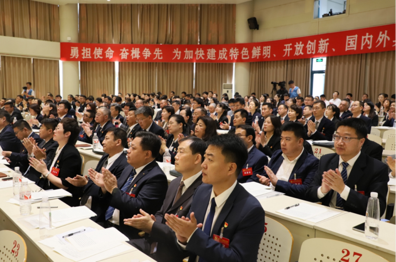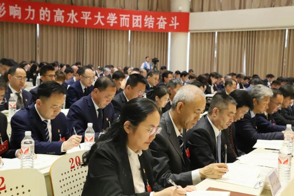 会场内气氛庄重热烈,来自全校的220名代表肩负广大师生员工的重托,豪情满怀,围绕“高举中国特色社会主义伟大旗帜,以习近平新时代中国特色社会主义思想为指导,全面贯彻落实党的二十大精神和习近平总书记关于教育的重要论述,落实立德树人根本任务,着力推进高质量发展,勇担使命,奋楫争先,为加快建成特色鲜明、开放创新、国内外具有重要影响力的高水平大学而团结奋斗”的大会主题,共商学校发展大计、擘画学校发展蓝图。