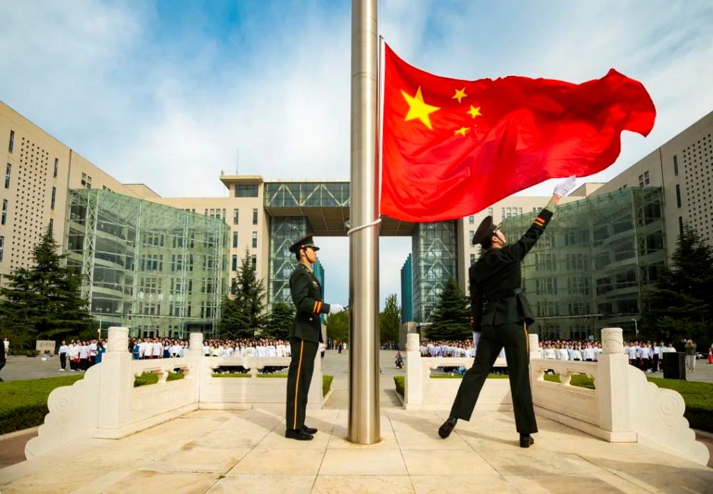 团委承办,各学院辅导员老师、优秀科研学生代表、优秀学生干部代表以及各学院2022级新生代表参加国旗升旗仪式。