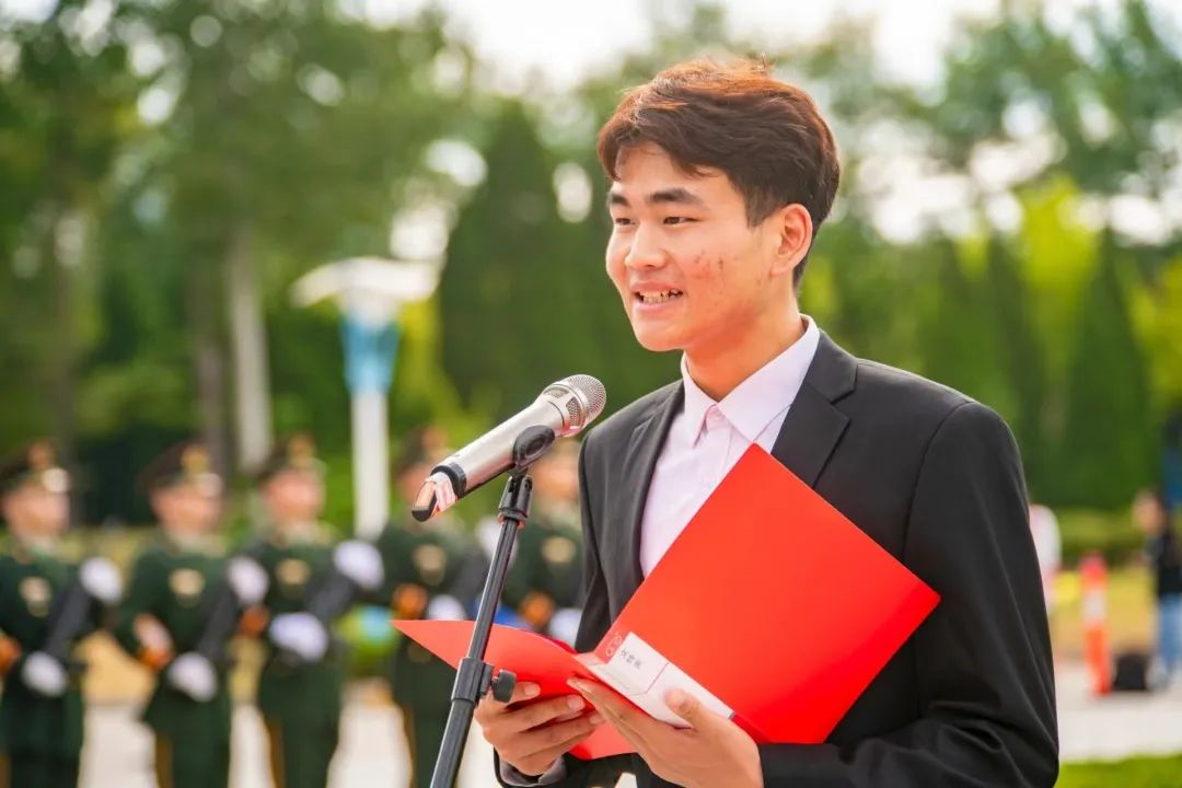2020级高分子材料与工程专业马晓宇同学带领现场学生代表在鲜艳的五星红旗下庄严宣誓。
