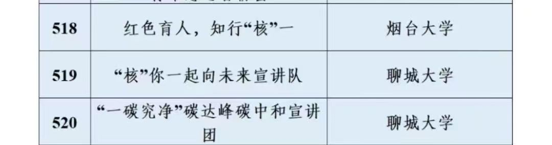 重点团队、2022年“强国有我,‘核’你一起”千支大学生志愿宣讲团。