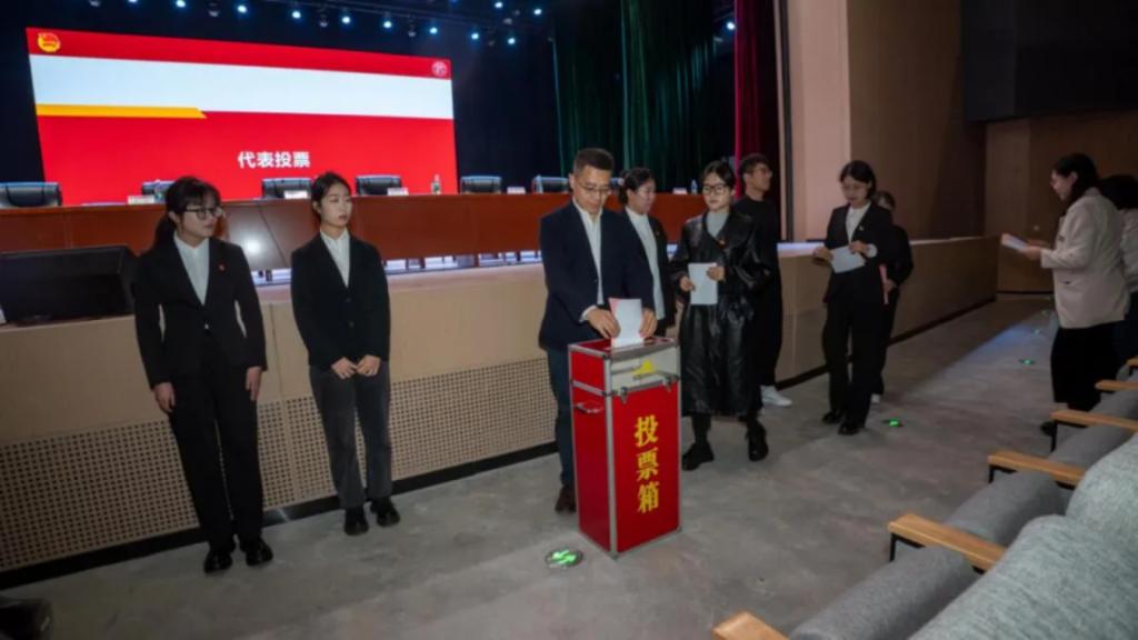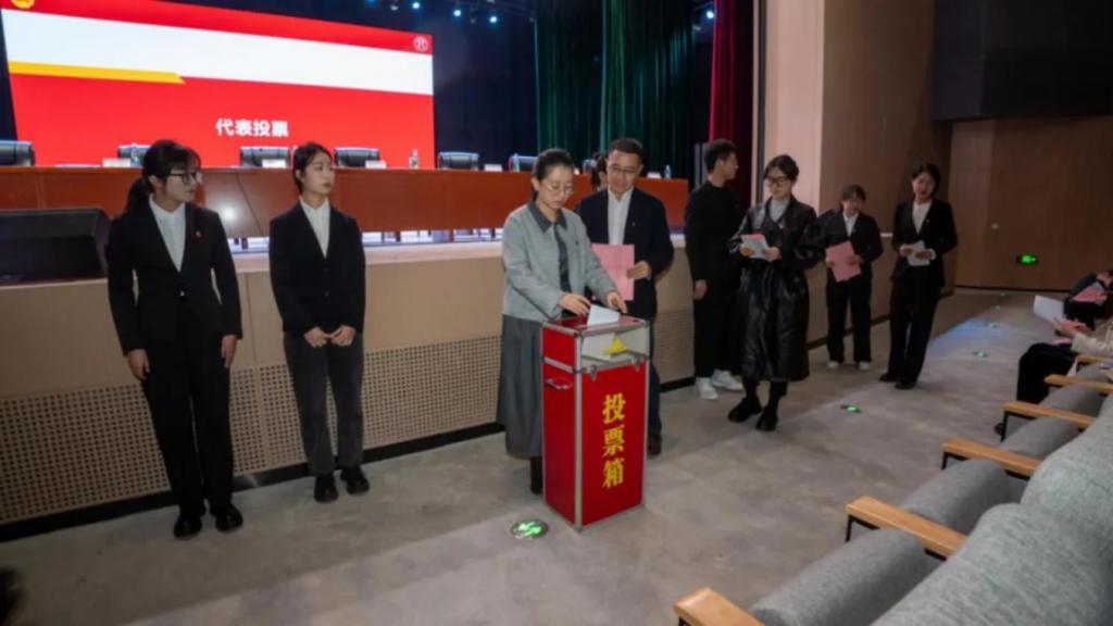 2024年学生代表大会决议(草案)》的全体通过,本次大会在全体师生激昂的团歌声中圆满结束。之后,新当选的共青团5楼自拍