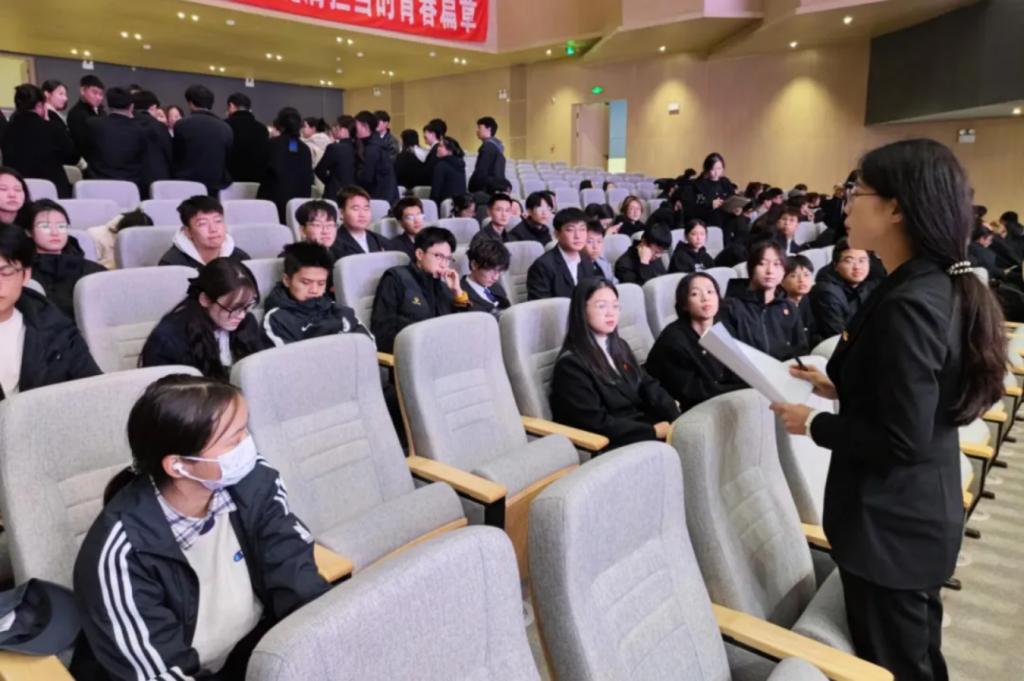 而贡献力量;紧紧围绕学校“一五八一”总体部署,为建设特色鲜明、开放创新、国内外具有重要影响力的高水平大学而努力奋斗!随后,赵颖老师报告了学院2023-2024学年在学风建设、专业教育、学生培养、宿舍文化建设、学生服务体系、学院管理规范、暖心育人等方面的院学生工作,进一步阐明学院学生服务、教育、管理工作将继续坚持“以学风建设为核心,以育人为上、服务为先、管理规范、温暖细致”的目标,有效整合教学、科研、管理、服务等资源,健全“三全”育人机制,不断提高学生服务、教育与管理水平,更好地服务同学们。