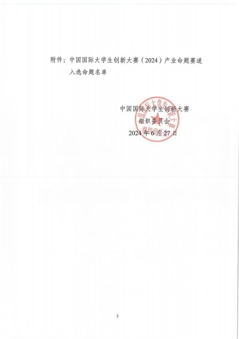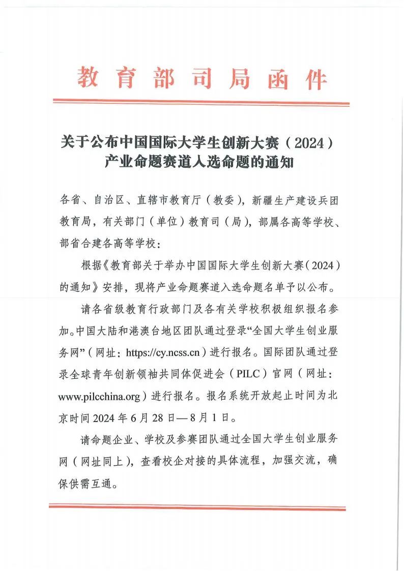 关于公布中国国际大学生创新大赛(2024)产业命题赛道入选命题的通知